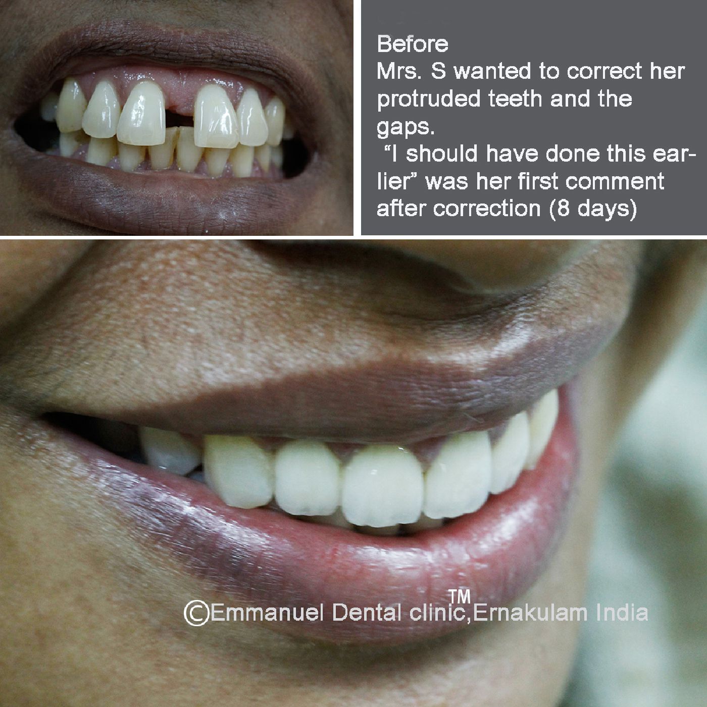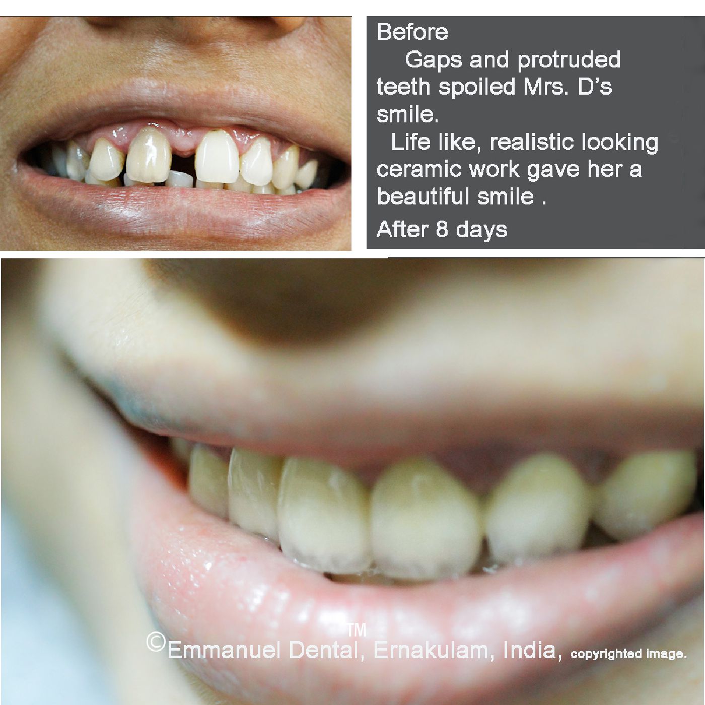 Big gaps between front teeth or missing teeth too can be corrected in this manner.