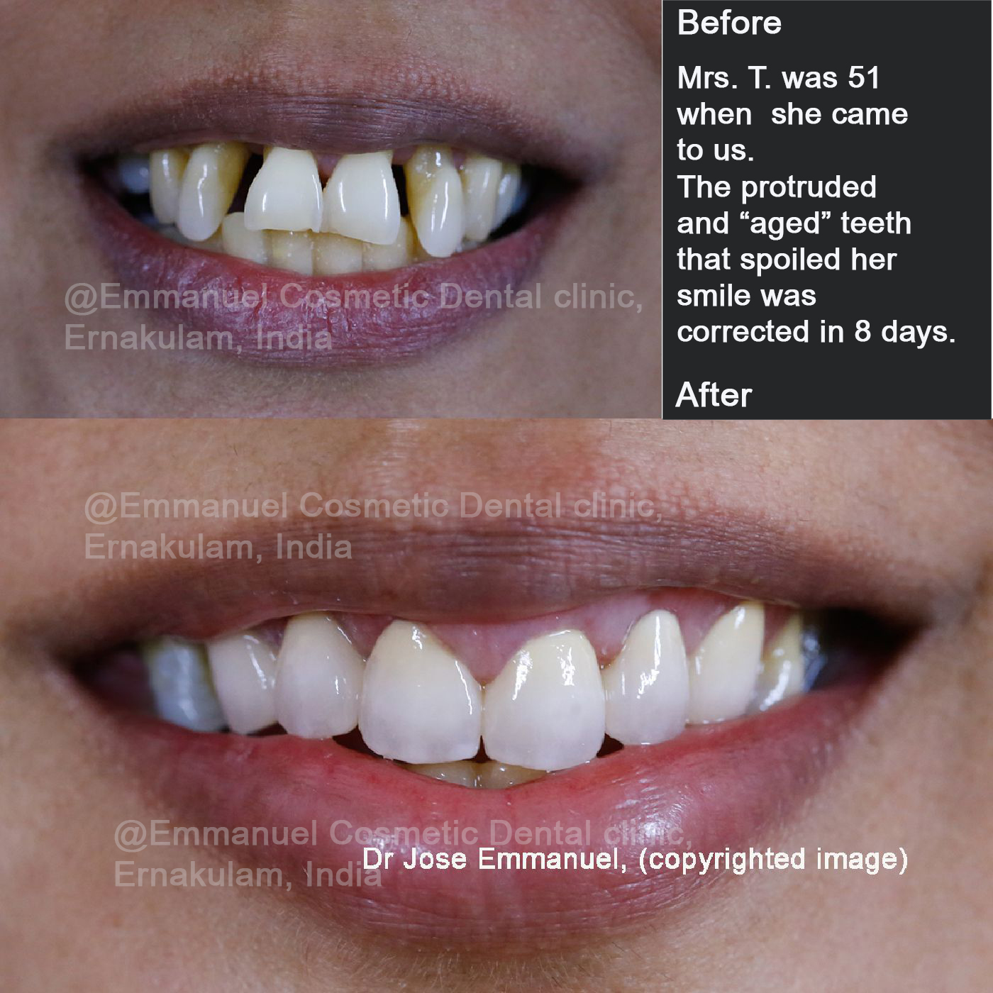 Ceramic work can be use to correct the appearance of protruded, worn off,or “aged teeth ” .